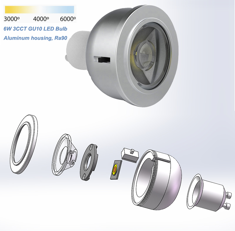 AC 85-265V Aluminum Unique Switchable 3CCT GU10 LED Spotlight Bulb